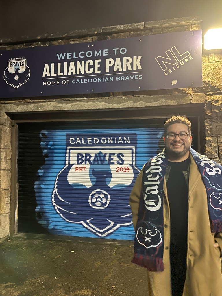 Did you know? I am a proud part-owner of the Caledonian Braves, a fifth-division wee football club in Scotland! I decided to invest in the team back in 2023, after seeing a couple of their social media posts. I was fascinated by the prospect of ownership, a financial achievement that would have been inconceivable to think about growing up. I was also fascinated by the project itself – to reach the top flight of Scottish football in 10 years or less. I took $1000 of my 2026 World Cup savings to invest to the Braves, and over a year later, I made my visit to Alliance Park. Oh everyone was so welcoming! From the parents of the players, to the staff, Club President Chris Ewing and Head Coach Waddell, I felt welcomed to the club and the community. I can’t wait to come back to Glasgow and see the team action once more!